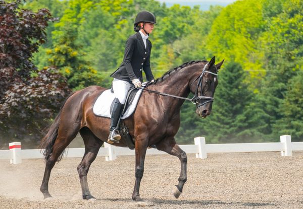 Marquies is 17 h hand Holstiener Warmblood Gelding. Ralea actually trained this horse over a year ago at another barn for the owner. No one could get on him and stay on him while mounting. So she was asked to take on the challenge. She had to get creative but managed to show him that mounting was a wonderful thing and not scary at all. This year She came across a lady this that wanted her to train a horse that couldn't be mounted. Behold is was the same horse formerly known as Holcomb . Ralea ended up buying him from current owner. All this "bad " behavior stemmed from bad fitting saddles, and bad horsemanship and his poor back was out. Now he couldn't be better. He is currently training all the I-1 and deveoping Piaffe and Passage. SOLD